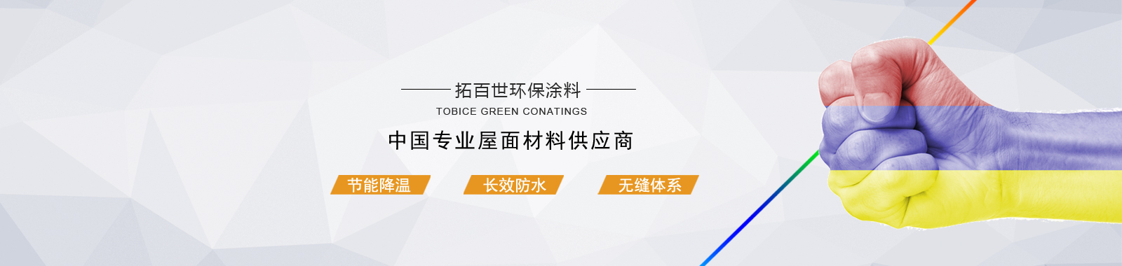 拓百世公司主營水性丙烯酸屋面節能防水涂料。以研發、生產涼爽型屋面防水體系、防銹型屋面防水體系、保溫型防水體系、防腐型防水體系產品為主。產品體系完整。